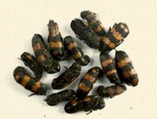 - 來源:芫青科昆蟲南方大斑蝥或黃黑小斑蝥及同屬昆蟲的乾燥蟲體