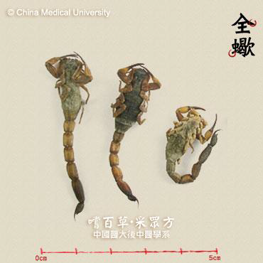 • 來源:鉗蠍科東亞鉗蠍Buthus martensi Karsch.的乾燥全體