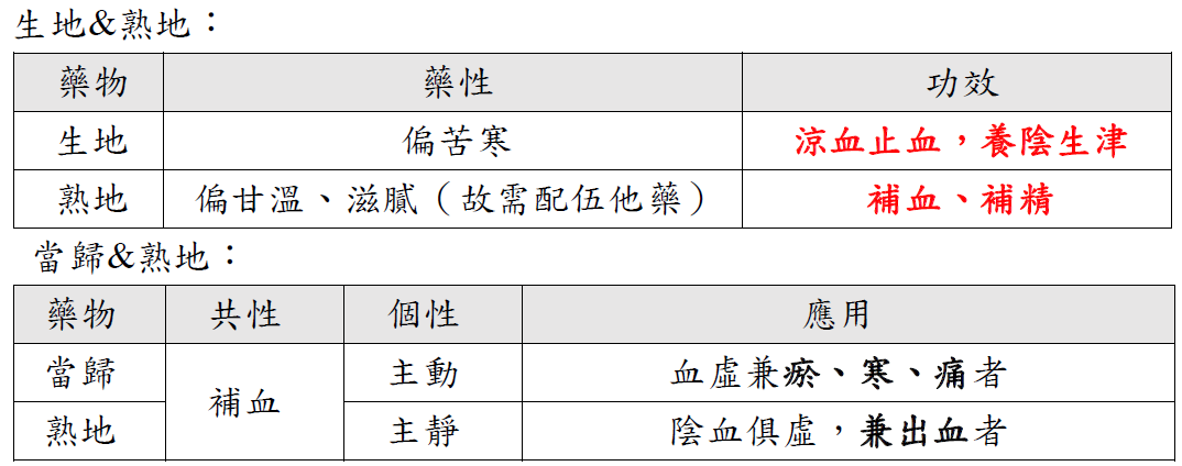 • 主靜(當歸→補血而主動,有活血之效)