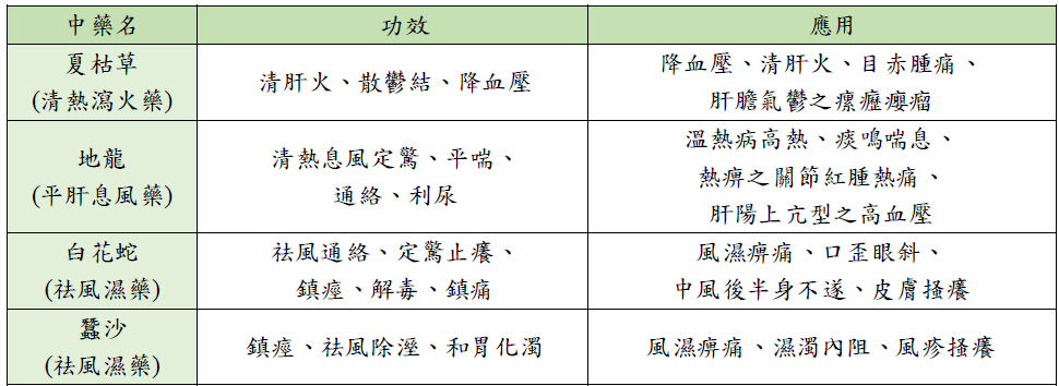 下列何藥不適用於陽亢有熱的高血壓患者? (A) 蜈蚣 (B) 石決明 (C) 鉤藤 (D) 地龍 flashcard (A) 蜈蚣味辛溫,有熱者不宜;性走竄,主要功效為息風止痙、通絡止痛,針對肌肉痙攣,無平肝息風的效果,不適用於高血壓患者。
